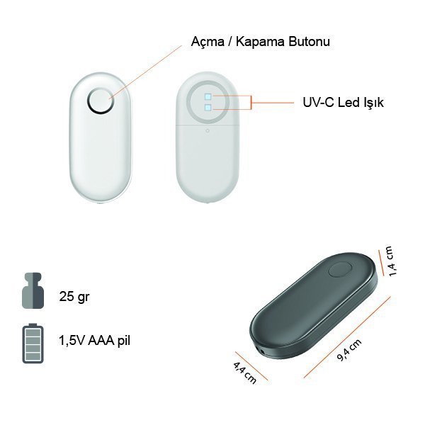 3 dakika içinde UV ışınlarıyla tuttuğunuz bölgeyi virüslerden temizler.