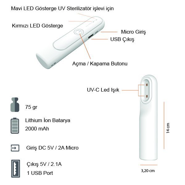 Ürün Adı: AP35 UV STERİLİZATOR TEMİZLEYİCİ (2000 MAH POWERBANK)