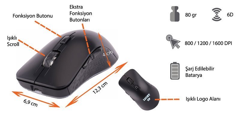 AP40 IŞIKLI KABLOSUZ MOUSE