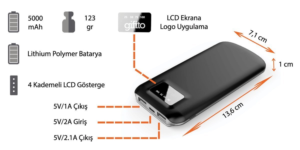 Ürün Adı: LP30 5000 MAH IŞIKLI EKRAN POWERBANK