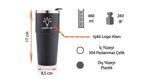 Ürün Adı: LP60 IŞIKLI TERMOS BARDAK 480 ML