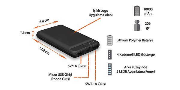 Ürün Adı: LP65 10000 MAH POWERBANK IŞIKLI LOGO